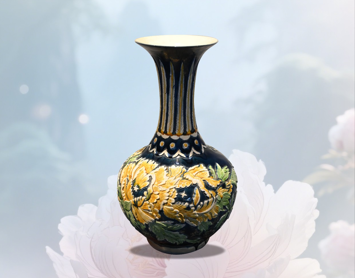 作品名称: 唐三彩浮雕牡丹瓶