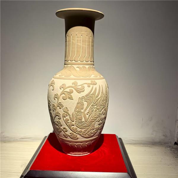 作品简介: 是中国陶瓷艺术中的重要品类,其工艺精湛、画风潇洒具有很高的艺术价值。以白地黑花、黑釉剔花等为主,纹饰多采用刻、划、剔等手法,线条流畅潇洒,常见兰花、水波纹、菊花等题材。