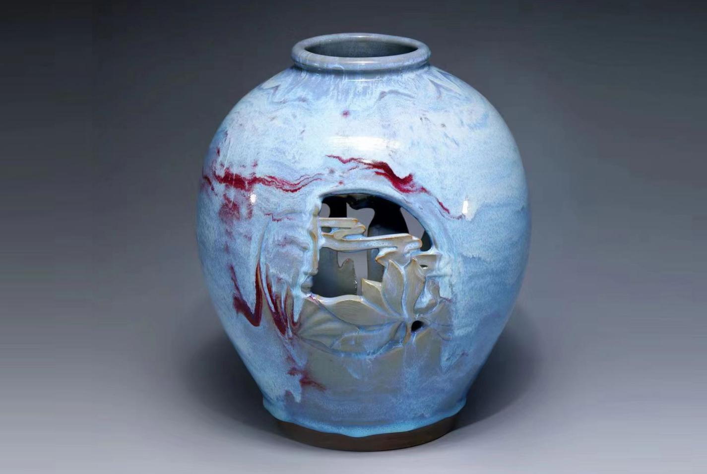 宋红雷,男,汉族,1981年生于钧瓷之都禹州市神垕镇陶瓷世家,河南省陶瓷艺术大师、非物质文化遗产钧瓷烧制技艺代表性传承人,师承中国陶瓷艺术大师杨晓锋。自幼浸润于钧瓷文化,1998年与父亲共同创立宋氏钧窑,以钧瓷花瓶创作为核心,秉承家学又锐意创新。其独创的钧瓷冰片釉技艺历经数十年锤炼,开创性研发出胭脂雪、夜雪、鸽子灰、星空蓝等釉色体系,将传统钧瓷的窑变之美推向新境界。从业二十余载,作品屡获殊荣作为钧瓷技艺守护者与革新者,他始终以承古法而开新境为理念,以釉色为笔触书写钧瓷艺术的当代华章,作品兼具传统气韵与现代审美,深受收藏界与艺术界推崇。