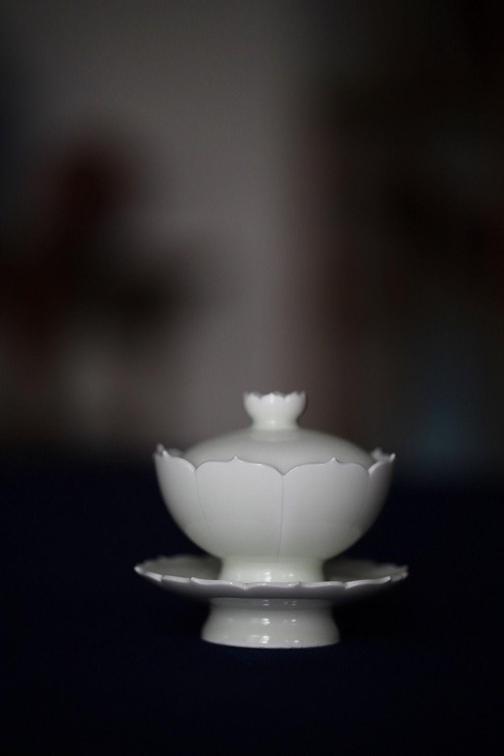关联陶链 甜白釉莲花盖碗